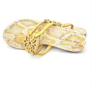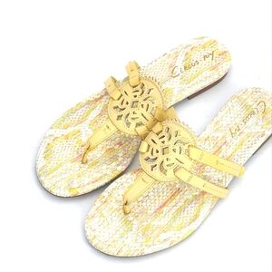 Circus By Sam Edelman Canyon Yellow Snake Print Faux Leather Thong Sandals 7.5