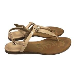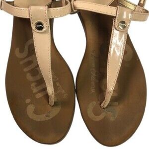 Circus By Sam Edelman Cayden Nude Patent Faux Leather Thong Strap Sandals.
