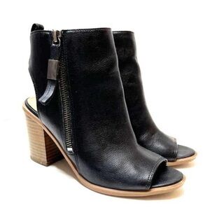 Circus By Sam Edelman Kammi Peep Toe Bootie black leather blocked heels size 6