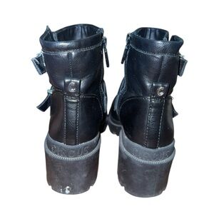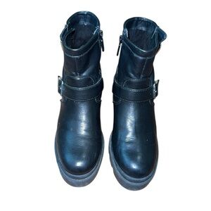 Item is in Great Used Condition. They do have Minor Scuffs on the Soles but nothing to Visible. They have a Side Zipper Closure with Silver Buckle Detail and a Chunky Platform Sole. No peeling or Scratches.