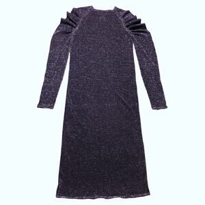 Circus Hotel Metallic Lurex Knit Purple Puff Sleeve Midi Dress 38 IT 2 US