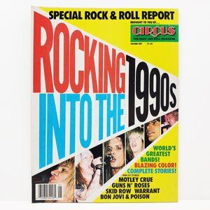 Circus Magazine Rocking Into 1990s (1989) special issue, unread. Features Skid Row, Guns n' Roses, and more. Minor vintage shelf life age, as shown. This is an unread/unsold deadstock issue from a now defunct newsstand business in the Washington, D.C. area. Ships safely padded in a secure box :)
