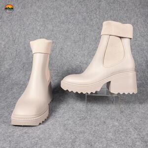 Circus NY By Sam Edelman Kala Rain Boots Beige Nude Lug Sole Heels Women's Sz 7M