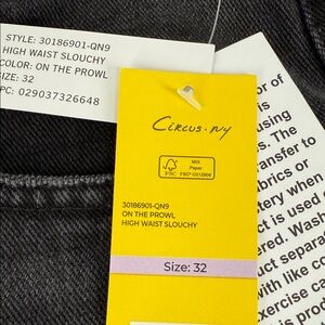Circus NY Jeans Wm 32 High Waist Slouchy Faded Black Distressed Wide Leg Plus