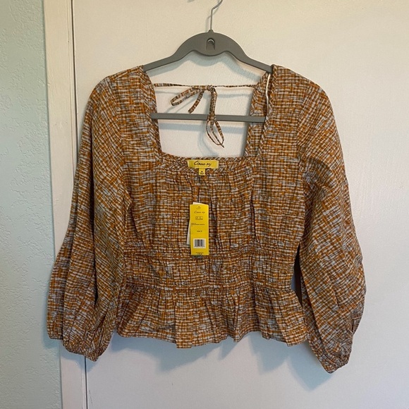 Circus NY NWT Orange Watercolor Stripe Off the Shoulder Square Neckline Top Sz M