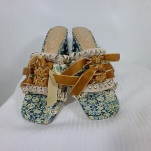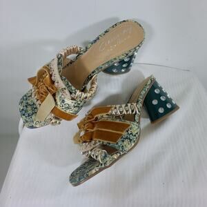 Circus NY Vera Mule Fabric Teal Rhinestone Velvet Bow Heel Sz 9 Boho Maximalist