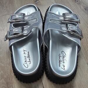 Circus NY by Sam Edelman Silver Black Cris Mesh Sandal sz 9M Summer Buckle