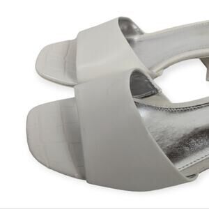 Circus NY by Sam Edelman White Croc Nova Block Heel Mules. The Nova sandals from Circus by Sam Edelman dress up or down with effortless simplicity and stylish sophistication. 1-3/4" block heel. Square-toe slip-on slide sandals. Cushioned insole for added comfort. Manmade upper; manmade lining; rubber sole.