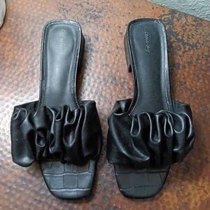 Step out in style this season in the new Women's Janis Slide Sandals from Circus by Sam Edelman. These classic slip-on slide sandals feature a faux leather upper with a ruffled toe strap and a lightly padded footbed.