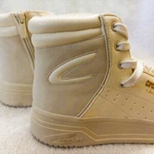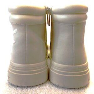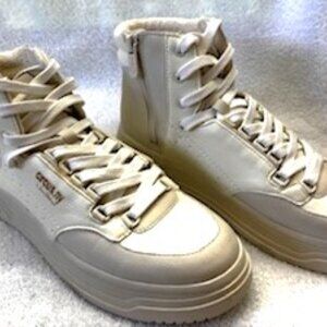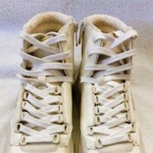 Circus NY by Sam Edelman "Irving" white high top sneakers with the Circus NY "C" logo on the outside and a 3-1/2" zip closure on the inside. These all manmade sneakers have a fabric cushioned ankle protection on the inside and a 1" platform under the cushioned insole. They will add a bit of height while adding a LOT iof fashion and style. Features 12 "D Ring" eyes for the laces and an additional 8 eyelets to secure the hightop and using the zipper which makes these easy on/easy off, the most comfortable setting can be preserved. Ideal for adding the laced in charm or other bling to personalize these timeless sneakers for years to come. Never been worn. NWOT