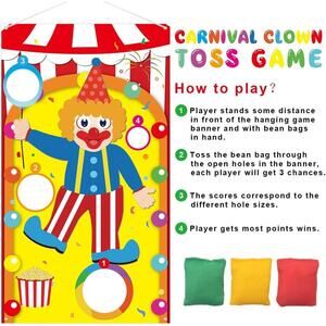 FANCY LAND Carnival Toss Game with 3 Bean Bags Clown Banner Circus Carnival Party Game Activities for Kids