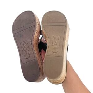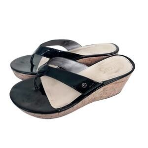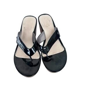 Circus Sam Edelman Black Patent Leather Raquel Cork Wedge Thong Sandals Sz 7
