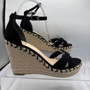 Circus Sam Edelman Womens Renee Platform Wedge Sandals 8.5M Black Ankle Strap