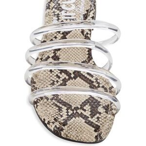 Transparent straps and a snakeskin textured footbed define these chic slides.