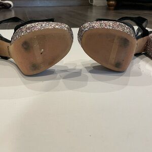 The Sam Edelman Circus Black Velvet Open Toe Platform Silver Glitter Chunky Heels are a stylish and trendy choice for women looking to make a fashion statement. These platform heels feature a chunky wedge heel and a luxurious velvet upper material in a bold black color with silver glitter accents. Perfect for adding a touch of glamour to any outfit, these shoes are sure to elevate any ensemble with their unique and eye-catching design. Ideal for those who love to stand out and make a statement, these heels are a must-have addition to any fashion-forward wardrobe.