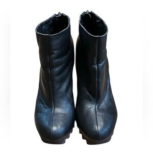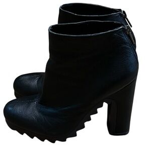 Circus by Sam Edelman Kensley black leather modern platform extreme tread heeled ankle boots