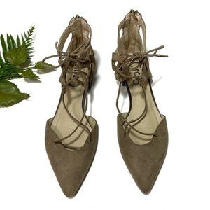 Circus by Sam Edelman Lace Up Pointed Toe Ballet Flat. Tan. Faux suede feel. Back zipper closure. Tie lace front. Minimal signs of wear. Great Condition.