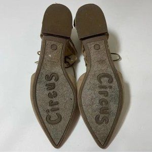 Circus by Sam Edelman Lace Up Pointed Toe Ballet Flat. Tan. Faux suede feel. Back zipper closure. Tie lace front. Minimal signs of wear. Great Condition.
