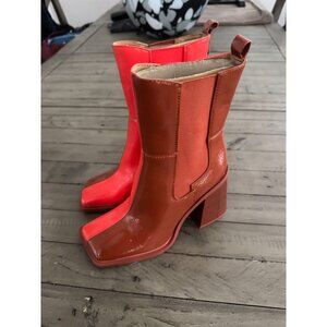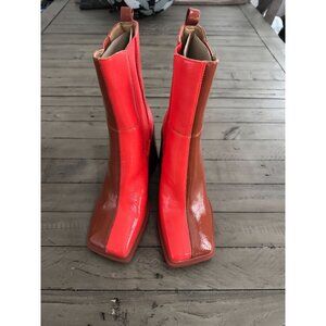 Circus NY by Sam Edelman Lauren Faux Leather Square Toe Chelsea Boots Booties Toffee Poppy Orange Size 7.5