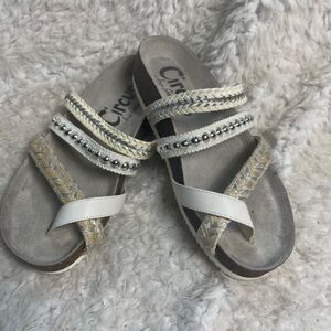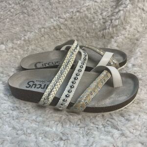 Circus by Sam Edelman Oleander Slide Sandal White/Silver Size 6 .Pre owned in good used condition signs of wear on the inner and outer soles see all pictures any questions please message.