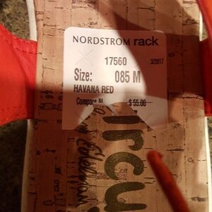 Worn Once! Faux suede upper. Adjustable ankle strap. White soles. Lightly cushioned footbed.
