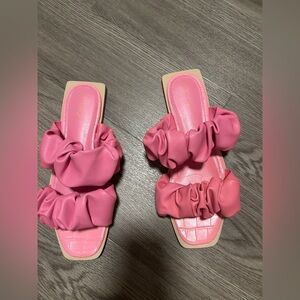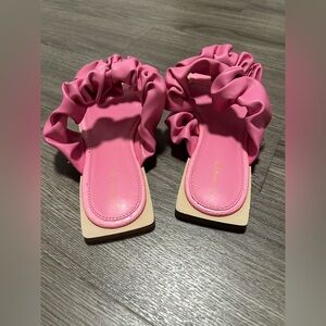 Step out in style with these chic pink ruffle sandals. Perfect for adding a pop of color to any outfit.