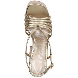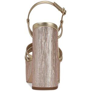Circus by Sam Edelman Siena Women's Yellow Sandal 6.5 M Fabric upper with a shiny finish *Slip-on fit *Lightly cushioned footbed *Platform outsole *5-1/8" chunky block heel. Size: 6.5 M Color:Gold Leaf Metallic Block heel: 4-3/4"; platform: 2" Round toe Slip on, buckled slingback strap Upper: fabric; lining: manmade; sole: manmade Size: Womens 6.5 Condition: New With Tags D7006 198535381739