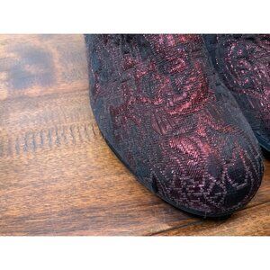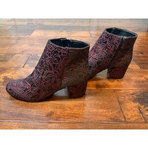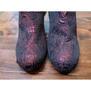 Circus by Sam Edelman Vikki Red Metallic Brocade Block Heel Ankle Boots, Sz 9.5