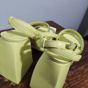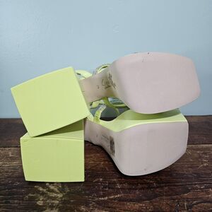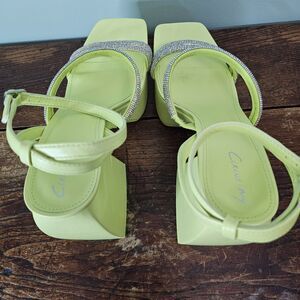 Elevate your style with the Circus by Sam Edelman Women's Mila Jewel Platform Sandals. Designed to make a statement, these vibrant lime sandals feature a chic block heel and a comfortable platform that provides an extra boost of height. The synthetic upper material is complemented by a secure buckle closure, ensuring a snug and supportive fit for a size 7.5 Medium (B,M). Clean, worn one time. Perfect for summer occasions, the Mila Jewel sandal boasts a solid pattern that allows for versatile pairing with a range of outfits. The fabric and man-made materials combine to create a sandal that's both durable and gentle on your feet, ensuring that you can enjoy every moment of the season.