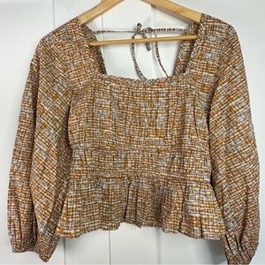 🎆 Circus by Sam Edelman peplum top small square neck balloon sleeve orange retro
