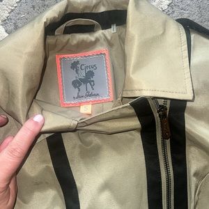 Excellent, used condition. Only wore a handful of times. Army, olive green color. Rain coat type of material. Comes from a smoke free home. Bundle and save.
