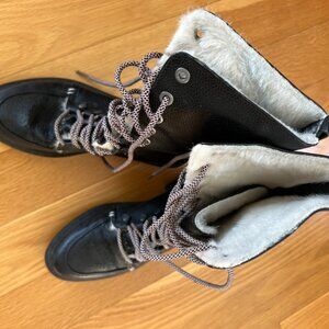 Circus by Sam Edelman black snow boots with faux fur lining, lace up front, size 6