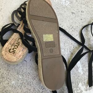 This photo suede sandals are in new condition, they lace up around the ankle, soles are new, rope around the edges like espadrilles