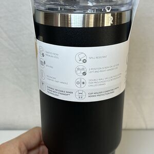 The Cirkul Black 40oz All-Day StrawSip Double-Wall Insulated Stainless Steel Tumbler is a stylish and durable drinkware option suitable for both hot and cold beverages. Made from high-quality stainless steel, this tumbler features a solid black color and comes in a two-piece set with a matching lid and straw. The double-wall insulation helps to keep your drinks at the desired temperature, while the drink-through lid and handle make it easy to sip on the go. Perfect for both teens and adults, this tumbler is ideal for everyday use and can be hand washed for easy maintenance.