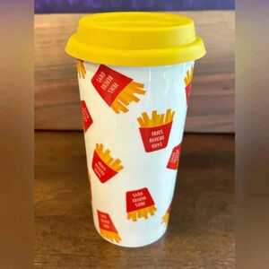 Ciroa Reuse Me Porcelain Travel Mug with Silicone Lid, French Fries 16 Oz In EUC