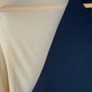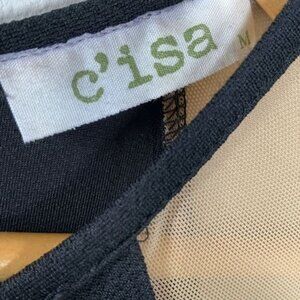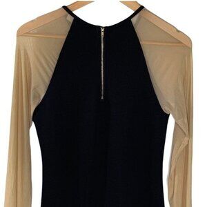 Cisa Black Tan Long Sleeve Mesh Lace Hem Sheath Dress Size M