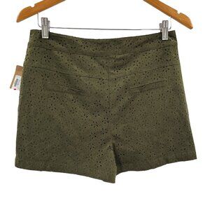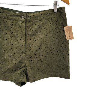 C'isa Eyelet Cutout Faux Suede High Waisted Shorts Olive Green Boho