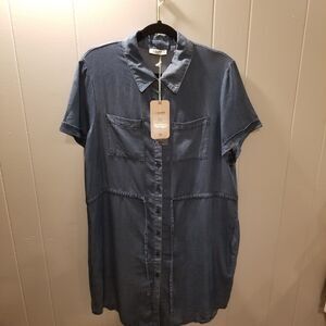 Cisono Los Angles Women's Blue Chambray Button up Shirt Dress Size Large