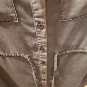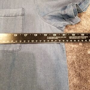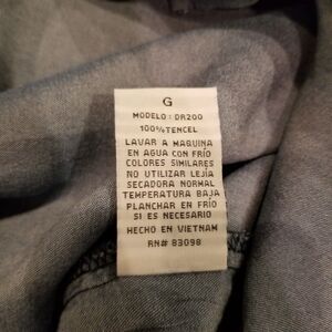 Made from high-quality tencel material, this knee-length dress is perfect for summer, fall, and spring seasons. The dress is brand new with tags and is available in size large. With its solid pattern and chambray fabric type, this shirt dress is a versatile piece that can be dressed up or down. Add this timeless classic to your wardrobe today.