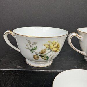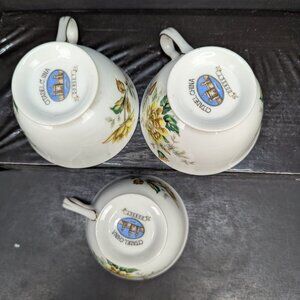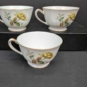 Citadel China Dorset Porcelain Floral Yellow Rose Pattern Footed Teacup Set of 3
