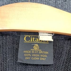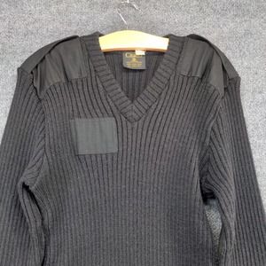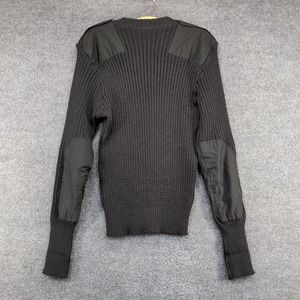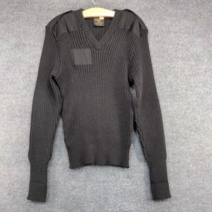Citadel Mens Ribbed Sweater Black 44 V-Neck Patch Wool Vintage Great Britain