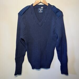Citadel VTG Navy Blue Ribbed Knit Virgin Wool Military Pullover V Neck Mens 42/L