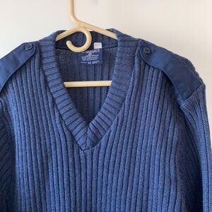 Citadel Vintage Ribbed Virgin Wool V Neck Sweater M