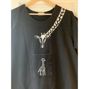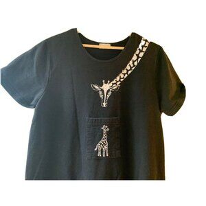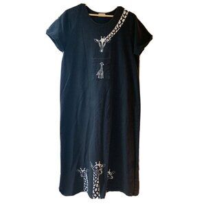 Cite Vintage Black Cotton Maxi Short Sleeve Pocket Giraffe Dress Size XL