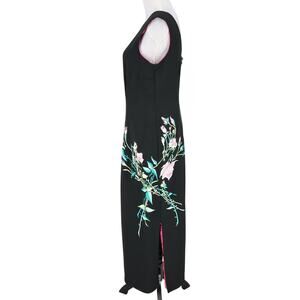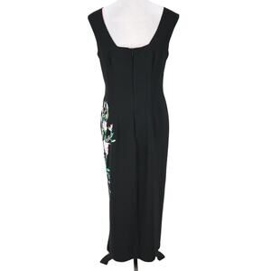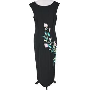 Citi Dress Gown Womens 10 Black Floral Embroidered Lined Sheath Long Back Zip