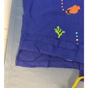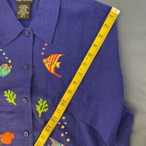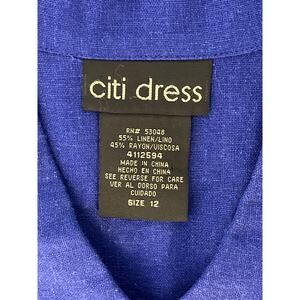 Citi Dress Short Sleeve Linen Blend Button Up Top Blue with Embroidery Size 12
