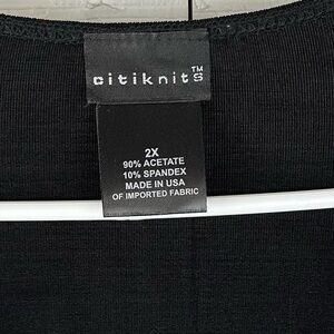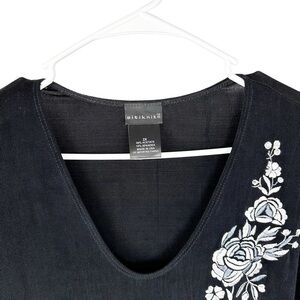 CitiKnits Black and White Floral Embroidered Slinky Top Size 2X