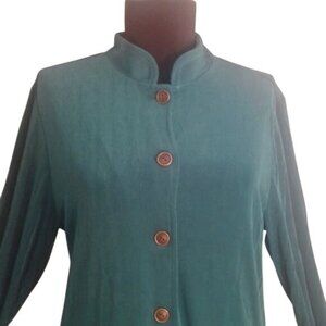 Citiknits S Jacket Teal Long Sleeve Mandarin Collar Button Up Slinky Travel Knit