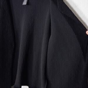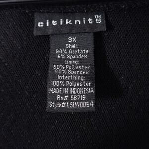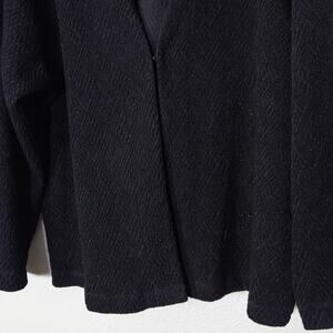 This Citiknit open cardigan leans into chic minimalism with its black textured knit and clean lines that give it an easy, relaxed, sophisticated shape. Women’s size 3X. The fabric has a soft, lightweight feel, and the open front keeps the silhouette fluid without adding bulk, letting the understated elegance of the pattern do the work.