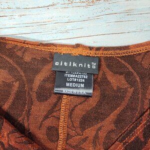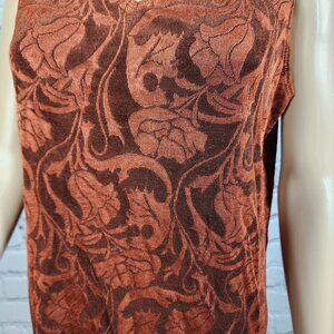 Citiknits Women's Stretchy Medium Burnt Orange Floral Sleeveless Top
